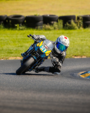 Alle Knieschleifer mit Metallstiften sind weder im Öffentlichen Verkehr noch auf der Rennstrecke zugelassen. Wir raten von jedem Missbrauch ab und empfehlen unsere Schleifer ausschliesslich für Stunt und Show-Zwecke.